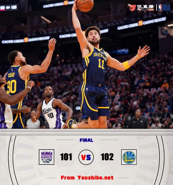 24直播网11月2日讯 NBA常规赛,勇士今日迎战国王,前者近来取得三连胜状态不俗,后者上场比赛则是通过加时战胜湖人,此役福克斯和莱尔斯缺战。比赛上来,勇士就率先进入状态打出12-3的开局取得领先,但及时调整的国王随后就追上比分,首节结束时已经反超3分,次节两队开始展开拉锯,场上比分交替领先,半场结束时勇士仅领先1分;下半场回来,勇士表现慢热,国王趁势打出一波14-2的攻势建立起两位数的领先优势,但随后他们的命中率急剧下滑,勇士在节末逐渐将分差抹平,末节勇士打出一波7-0的小高潮但依旧无法拉开分差,比赛悬念保持到了最后,关键时刻克莱迎着防守命中绝杀中距离,最终勇士险胜国王迎来四连胜。