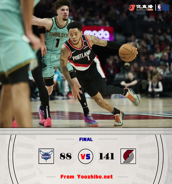24直播网讯 北京时间2月23日讯 NBA常规赛,黄蜂对阵开拓者,黄蜂上场输给掘金,开拓者最近遭遇4连败,本场比赛艾顿和罗威都缺阵。开场没多久开拓者就在阿夫迪亚的带领下打出一波13-0的攻势建立领先,虽然黄蜂两记三分止血,但开拓者再度打出冲击力又将比分拉开,开拓者的外线也逐渐找到手感连中三分。第二节黄蜂进攻依旧打得不理想,鲍尔手感不佳,反观西蒙斯状态火热单节轰下15分帮助开拓者继续扩大优势,半场过后开拓者领先33分。易边再战,鲍尔的表现依旧不佳,开拓者则是全面开花将分差继续拉大,比赛彻底失去悬念,末节成为两队练兵时间,最终开拓者141-88血洗黄蜂结束4连败,黄蜂遭遇2连败了。