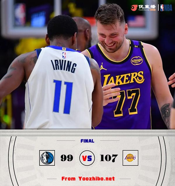 24直播网讯 北京时间2月26日讯 NBA常规赛焦点战,湖人主场迎战独行侠。这是东契奇和浓眉重磅交易后两队首次交锋,可惜浓眉本场因伤缺阵。湖人34胜21负西部第4,独行侠31胜27负西部第8。比赛开始,湖人率先发力打出9-2开局,欧文和东契奇接连外线对飚,随后里夫斯和八村塁又是接连三分命中,首节湖人领先8分,次节双方展开拉锯战,里夫斯接连三分单节得分上双,东契奇接连送助攻一度拉开16分领先,但湖人收内线策略效果不佳,克里斯蒂接连三分助独行侠半场追到差8分。下半场,双方展开拉锯战,湖人外线多个机会把握不住,欧文连砍7分继续带队追分,埃克萨姆接连中远投砍下5分追到差1分,末节克莱连续3记三分追平比分,东契奇上场和一攻一传助队稳住局势,欧文三分再追,但芬尼-史密斯和詹姆斯接连送补扣,湖人牢牢掌握住两球以上领先,最终湖人107-99力克独行侠,拿到3连胜。