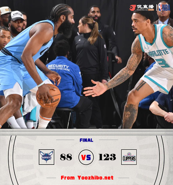 24直播网讯 北京时间3月17日NBA常规赛,快船主场迎战黄蜂,快船2连胜后37胜30负排在西部第8位,黄蜂则是17胜49负排在东部第14位。本场比赛是因洛杉矶山火延期至今日;鲍威尔再次迎来复出。比赛开始,哈登率先打出状态连砍7分,但三球和马威接连内线强攻回应,随后哈登里突外投又是连砍6分带队领先双位数,次节双方命中率都有下降,小卡和巴图姆接连三分命中,哈登也有三罚,快船轰出16-4攻击波一举拉开20分以上领先,半场快船领先24分。下半场,小卡开始发力,里突外投单节得分上双,哈登继续状态不错,快船顺势拉开30分以上领先,末节双方拉锯战,快船留鲍威尔在场上带替补找状态,快船一度拉开近40分的领先,最终快船123-88大胜黄蜂,拿到3连胜。