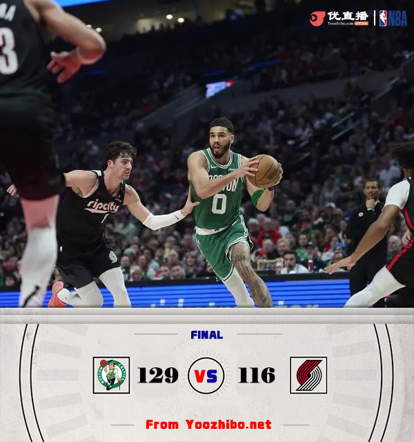 24直播网讯北京时间3月24日讯 NBA常规赛,开拓者主场迎战凯尔特人。两队都是4连胜,开拓者32胜39负西部第12,凯尔特人51胜19负东部第2。本场比赛,杰伦-布朗继续缺阵,霍勒迪和波尔津吉斯也不打。比赛开始,普理查德上来连续被吹犯规很快3犯下场,双方外线连续对飙,凯尔特人更胜一筹,塔图姆接连送助攻带队首节领先10分,次节开拓者发力连续反击一波12-0直接追平比分,霍福德接连中远投止血,绿军回应9-0稳住领先优势,随后凯尔特人外线继续发炮半场领先13分。第三节,塔图姆开始发力,里突外投单节轰下18分,凯尔特人一度拉开近20分领先,但顽强的开拓者还是追到差12分,末节双方继续对攻战,外线你来我往,但凯尔特人始终保持十几分领先,最终凯尔特人129-116力克开拓者,拿到5连胜同时终结对手4连胜。