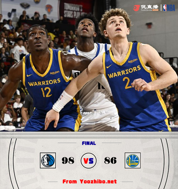 24直播网讯 7月13日 NBA夏季联赛继续开打,勇士和独行侠迎来一场交手,勇士方面阵容核心以首轮19号秀波杰姆斯基为主;独行侠方面则是二年级生哈迪加上今年12号新秀莱夫利为核心出战。首节之争两队状态相当多次交替领先,独行侠在最后一分钟里抓住勇士熄火的机会并由沃克命中三分拿到主动权;次节勇士凭借基诺内斯的连续拿分短暂反超比分;不过哈迪在进攻端状态不错,他在这一节连拿8分帮助球队守住6分优势进入下半场。休息归来场面依旧,独行侠虽然一度拿到9分优势但也无法接管比赛,勇士这边基诺内斯状态出色连拿10分,勇士用一波19-10的攻势迅速抹平比分。末节开局独行侠开局连续两次打成2+1后又在外线命中三分,他们送出15-5的攻势建立起两位数领先;这之后勇士疯狂反扑,最后时刻他们制造一记恶意犯规一个回合拿下4分,最后戴维斯命中三分扳平比分将比赛拖入加时。加时赛规则为任意一方率先拿到7分为胜者,双方一路交替拿分都拿到了6分后的赛点,最后独行侠凭借布拉克斯顿-基的补扣实现绝杀。最终,独行侠98-96险胜勇士拿下比赛,同时也送勇士三连败。