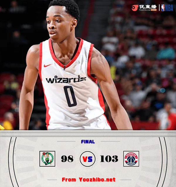 24直播网7月10日讯 NBA赌城夏季联赛,凯尔特人对阵奇才,奇才今年选秀大会上拿到7号秀库利巴利和42号秀武克切维奇,凯尔特人则是拿到38号秀沃尔什和53号秀JD-戴维森。比赛开始,虽然沃尔什手感不佳连续打铁,但好在凯尔特人其余队友多点开花占据主动权,而奇才库利巴利上来就反击扣篮,武克切维奇也扔进三分,鲍德温里突外投帮助奇才咬住比分,次节双方展开拉锯战,除了沃尔什还是没有手感外,双方都全民皆兵,半场凯尔特人仅领先1分。下半场,奇才的三分手感有所回暖,凯尔特人进攻端受阻,奇才顺势将比分反超,末节双方展开拉锯战,贾斯汀-尚帕尼接连扔进三分将分差再次追至个位数,但罗林斯一攻一传稳住局势,最终奇才103-98力克凯尔特人。