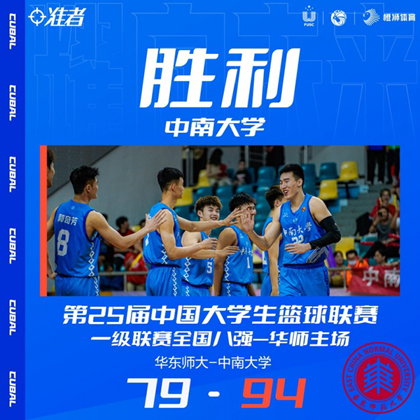 末节,王子琛独中两记三分帮助球队保持大比分领先,华东师大不断杀入油漆区拿分苦苦支撑,王子琛出现违体犯规但卢嘉俊两罚不中,过大的分差让比赛早早失去悬念,卢嘉俊连中两记三分。最终,中南大学94-79再胜华东师大,挺进4强。
