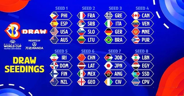 24直播网讯 北京时间4月29日消息,2023年男篮世界杯抽签仪式在菲律宾首都马尼拉举行。中国队被抽进B组,同组的球队包括塞尔维亚队、老对手波多黎各队,以及南苏丹队。