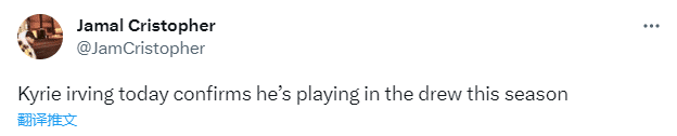 欧文戴着棒球帽、身穿中国品牌安踏的长袖连帽卫衣,坐在场边观看德鲁联赛,在镜头中,欧文公开承诺,他将会出战今年的德鲁联赛。