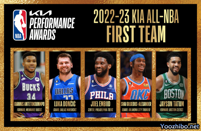 入选一阵的包括亚历山大、东契奇、字母哥、塔图姆、恩比德;