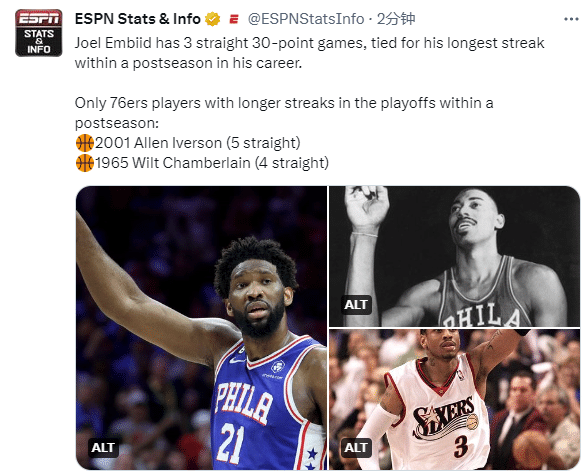 24直播网05月10日,NBA季后赛76人G5击败凯尔特人夺赛点,系列赛大比分3-2夺赛点,恩比德全场23投10中拿到33分7篮板3助攻4盖帽,追帽塔图姆和布朗双探花太疯狂,末节轰进三分疯狂庆祝以及大笑鼓掌,恩比德创纪录,季后赛连续3场30+追平生涯最长纪录,也是队史第三长纪录,在场正负值+21全队第一。