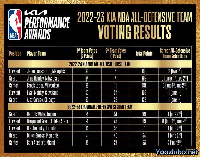 24直播网05月10日,NBA官方公布了2022-23赛季常规赛最佳防守阵容。