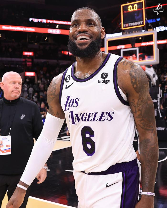 湖人名宿魔术师约翰逊发推:湖人143-138战胜马刺,今晚就是属于詹姆斯的表演!他砍下了39分11篮板;詹姆斯和威少的空接连线太棒了。