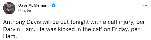 对于浓眉的伤情,医学专家Evan Jeffries表示希望浓眉仅仅只是因为小腿瘀伤和背靠背而缺席比赛。