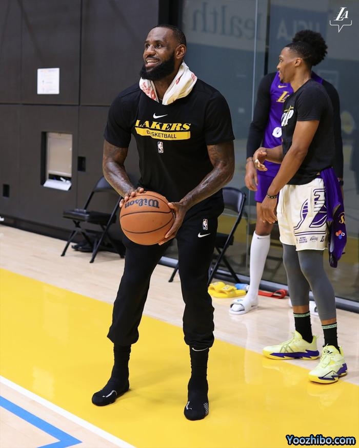 湖人三巨头再次比试投篮,37岁詹姆斯连鞋都没穿,仅穿袜子便赤脚上阵,浓眉穿着一双白色拖鞋,威少则是短裤短袖和篮球鞋,三巨头一起加练投篮,现场氛围太好了,老詹浓眉和威少都是满脸笑容。