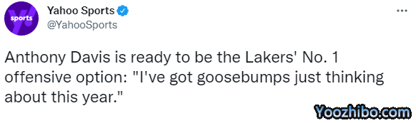 据雅虎名记Chris Haynes报道,浓眉已经准备好成为湖人第一进攻选择,浓眉表示:我很兴奋,一想起新赛季,我就会起鸡皮疙瘩,我期待着打出健康的一年并且尽我所能。