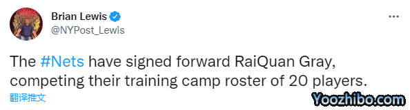 24直播网09月27日,据名记Brian Lewis报道,篮网已经签下前锋雷匡-格雷,双方签下一份训练营合同;篮网训练营20人大名单出炉,杜兰特、欧文和西蒙斯新三巨头领衔15+2冲冠阵容。