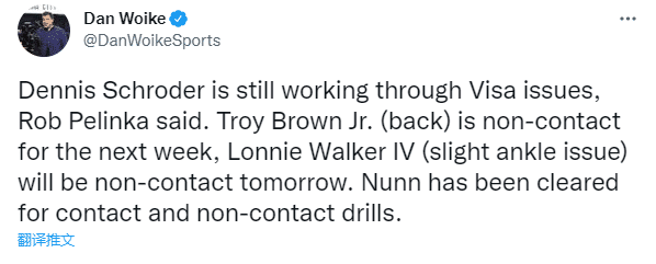 今夏施罗德和湖人签下1年264万美元底薪合同,代表德国出战欧洲杯并且夺得铜牌,不过施罗德暂未归队,缺席詹姆斯组织的迷你训练营和今天的媒体日,预计他很快能回归。