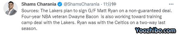 24直播网09月26日湖人官方裁掉一人后连续签下两名球员,据名记Shams报道,湖人计划以非保障合同签下马特-瑞安,还用训练营合同签德维恩-培根;湖人20人大名单满额,三巨头领衔冲冠。