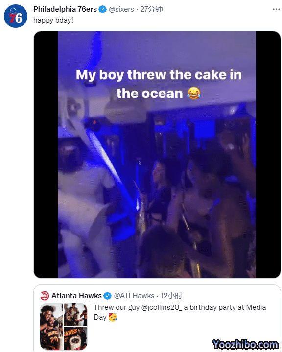 如今老鹰此举真是拉仇恨;科林斯开心了,但恩比德看到后一定会把这样的耻辱记下来,76人官方回应老鹰,晒出哈登生日夜把生日蛋糕扔进海里的画面,配文写道:生日快乐。