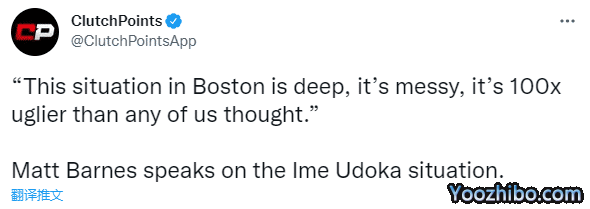 24直播网09月24日最近几天,凯尔特人主帅乌度卡因出轨女职员被禁赛一年引发巨大争议,究竟乌度卡和谁发生关系更是在推特上引发猜测风波,有八卦账号猜测乌度卡出轨霍福德的妹妹,后者已经发声澄清;乌度卡被停职后,前NBA球员马特-巴恩斯炮轰乌度卡。