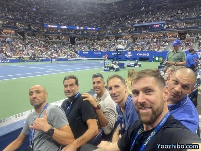 24直播网09月13日,刚刚正式入选名人堂的马努-吉诺比利亮相美国网球公开赛场边,和多位阿根廷国家队队员重聚。他的身边有路易斯-斯科拉、法布里西奥-奥博托、安德雷斯-诺西奥尼、加布里埃尔-费尔南德斯。他们是阿根廷黄金一代的成员,18年前,他们在雅典奥运会的半决赛联手掀翻美国男篮,并最终夺得金牌。