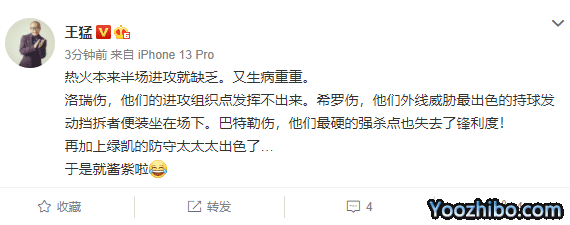 比赛解释之后,知名篮球人王猛点出了热火的败因,称:“热火本来半场进攻就缺乏。又生病重重。洛瑞伤,他们的进攻组织点发挥不出来。希罗伤,他们外线威胁最出色的持球发动挡拆者便装坐在场下。巴特勒伤,他们最硬的强杀点也失去了锋利度!再加上绿凯的防守太太太出色了…”