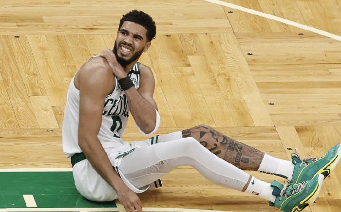 东决G3一战,斯玛特惨遭90度崴脚,被搀扶离场后重返赛场,带伤坚持令人动容,不过凯尔特人上半场挖坑太大,最终逆转失败输掉比赛;塔图姆在末节遭遇肩伤,也是返回更衣室后重新上场,真实伤情确诊为右侧颈部神经压迫。