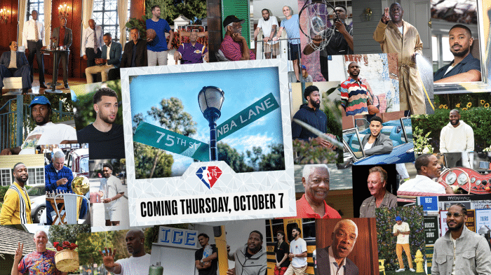 为纪念联盟成立的第75周年,联盟组织并拍摄了一部时长为三分钟的短片《NBA小巷》,将于北京时间10月8日在NBA官方的纪念活动中首次播放;总共有30多位NBA现役球星和名宿出镜,讲述了NBA过去75年间的故事,其中部分剧情有魔术师和伯德变成了邻居,贾巴尔教诺维斯基什么是天勾的艺术以及锡安扣碎篮板。