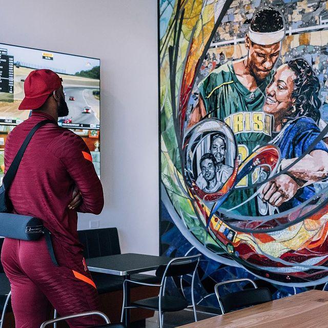詹姆斯亲自参观以“勒布朗-詹姆斯”命名的耐克创新中心,这栋大楼外部有一处十分醒目的LBJ logo,大楼内设印有詹姆斯专属logo的球馆,中央logo处印着詹姆斯生涯的重要荣誉——4次常规赛MVP、16次全明星、4次总冠军和4次FMVP。