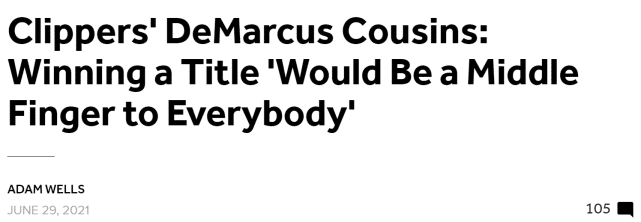 最近4个赛季,受困于伤病问题,考辛斯没有达到自己预期的状态。而在跟腱断裂前,他本是NBA最具统治力的大个子之一。即便如此,考辛斯也想向所有质疑他的人证明自己。
