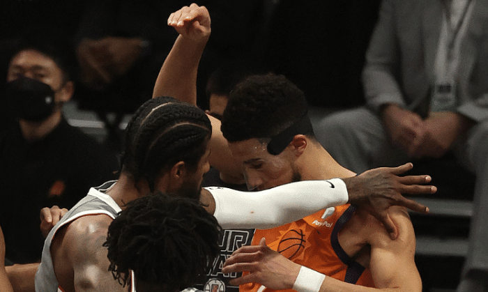 24直播网讯今天NBA季后赛西部决赛G4结束了争夺,最终太阳以84-80险胜快船,总分3-1勇夺赛点。这场比赛太阳和快船打得非常惨烈,比赛中太阳一度长时间领先两位数,上半场也领先快船14分,不过到了下半场,雷吉和乔治等人爆发,缩小比分差距。末节的鏖战,双方几乎打到弹尽粮绝,加强防守的情况下得分都很困难。最终保罗关键的罚球,太阳把握机会能力更强一些,成功拿下胜利,系列赛总分来到3-1领先,勇夺赛点。