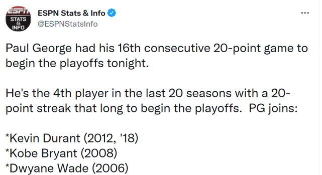 实际上,今年季后赛打到现在,泡椒的命中率也不过仅43.6%,但这并不影响他是全队得分最稳定的球员。连续16场比赛砍下20+,继续刷新快船季后赛队史纪录,乔治也是NBA近20年第4位,能以连续16场20+开启季后赛的球员,比肩06韦德、08科比、12和18年的杜兰特。