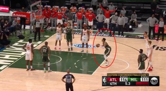 NBA官方昨日公布了东决G1的最后2分钟裁判报告,其中漏判字母哥两次罚球违例。比赛剩最后5.3秒,雄鹿111-114老鹰,字母哥上罚球线,他两次罚球出手前的准备时间都超过了10秒,但是裁判并未作出吹罚,最终字母哥两罚全中,分差缩小至1分。