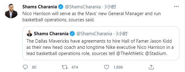 湖人名宿魔术师也恭喜基德,发推写道:基德将为东契奇和独行侠所带来的,就像麦克米兰为特雷杨和老鹰所做的一样,基德将让独行侠成为未来几年总冠军的有力争夺者。
