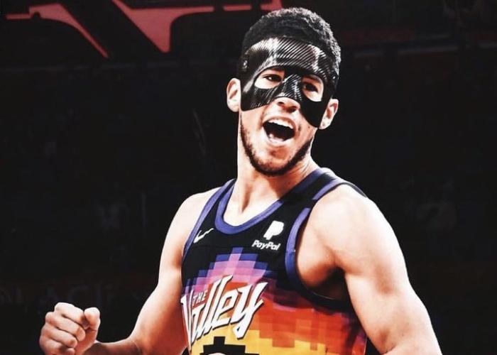 西决第二场,布克在进攻时与贝弗利相撞,鼻子被撞得血流不止,缝针后重返赛场,最终太阳再次拿下胜利;不过布克的鼻子早已肿的不成样子,而且鼻子被撞歪了;为了保护受伤的鼻子,因此布克将会戴面具出战西决G3,在洛杉矶斯台普斯球馆,布克戴面具出战,如此画面不禁让人想起科比。