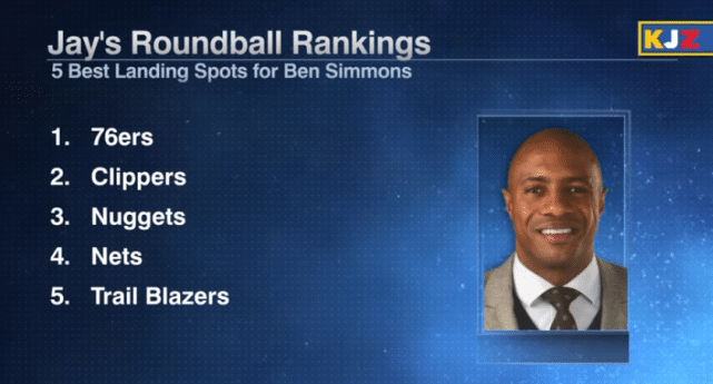 24直播网讯 北京时间6月23日,ESPN名嘴杰-威廉姆斯列出了本-西蒙斯的五大去处,并进行排位和解析,篮网和快船都在其中。