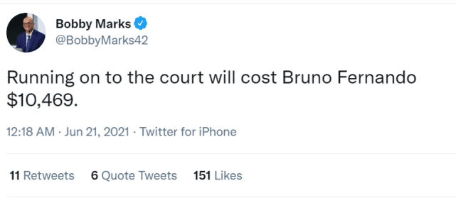 另外,老鹰替补中锋费尔南多由于在这一冲突中离开替补席,而被联盟禁赛一场。薪金专家鲍比-马克斯表示,费尔南多将因此损失10469美元的薪水。