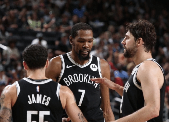常规赛的48分钟,当篮网队一次次陷入困境,杜兰特一次次挺身而出,当哈登依旧缺乏杀伤力,当乔哈里斯依旧扮演着卧底的情况,杜兰特在常规赛时间解决了所有的问题。比赛来到最后时刻,篮网队依旧落后4分,此时解决球队的依旧是杜兰特,无解的干拔投篮将比分追进。