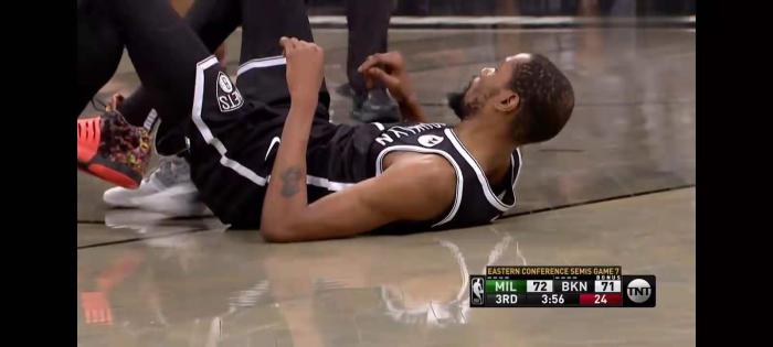 下半场比赛,当雄鹿队打出12:0的猛攻的时候,又是杜兰特站了出来回应,第三节比赛还剩下2分多钟的时候,杜兰特已经拿到了31分7篮板4助攻的数据。为了这场比赛,杜兰特有多拼呢?比赛进行到第三节还剩下三分多钟的时候,因为哈登没有卡住塔克,让抢到篮板球的杜兰特直接受到冲击,被撞击后,杜兰特也是重重倒地,这也是杜兰特本节比赛的第三次倒地,随后裁判吹罚了犯规,杜兰特走上了罚球线。