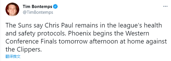 对于保罗的突发状况,布克表示太阳需要抱着一种“需要下一个人站出来”的心态,无论保罗是否能出战,他们都已准备好了。