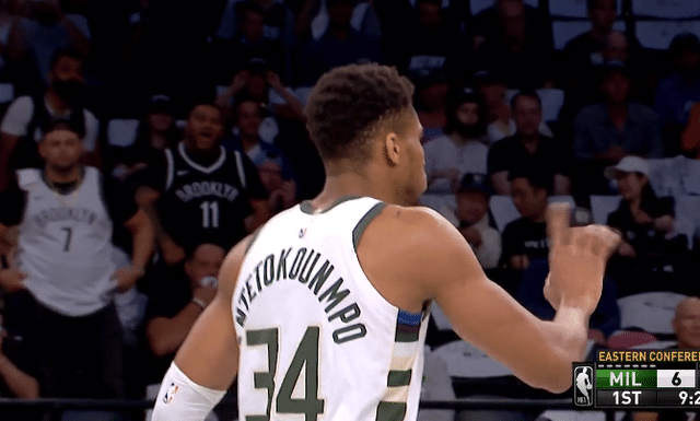 24直播网讯 垫脚,又是垫脚,字母哥在篮网队对阵雄鹿队的东部半决赛系列赛中交出的不是亮眼的数据,而是接连的两次垫脚。