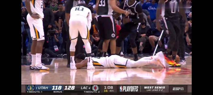 快船队的一波流进攻也让爵士队处境艰难,再加上米切尔的伤病下场,快船队抓紧时间反超了比分,将胜利掌握在自己的手中,当比赛进行到最后2分钟,米切尔再一次摔倒的时候,这个悍将罕见的沮丧怒拍地板。