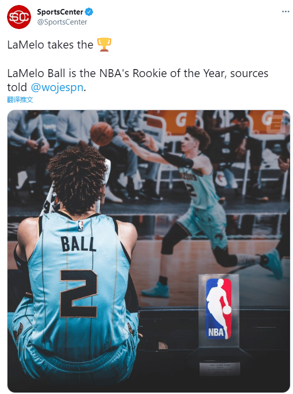 24直播网讯 北京时间6月17日,NBA又一大年度大奖出炉,据ESPN名记沃纳罗斯基报道,“三球”拉梅洛击败状元和国王新星荣获年度最佳新秀,美媒纷纷晒照恭喜三球获得最佳新秀。
