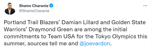 24直播网讯北京时间6月16日,据The Athletic报道,开拓者球员利拉德和勇士球员德雷蒙德-格林都已经对美国男篮做出初步承诺,他们愿意随队参加今年夏天的东京奥运会。