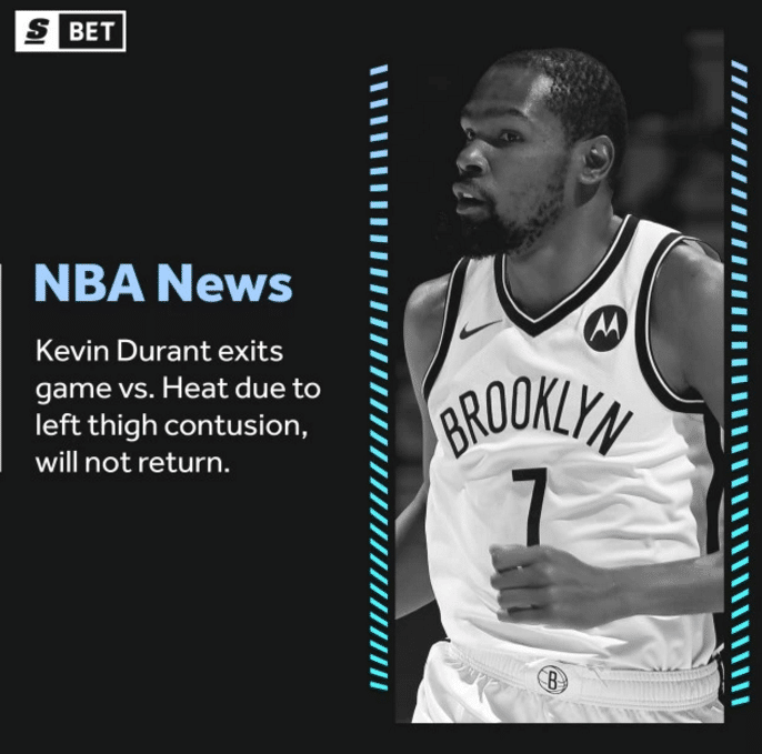 相比输球,篮网更糟心的,是杜兰特又受伤了。比赛仅仅打了4分03秒,杜兰特就因为大腿不适返回了更衣室,随后篮网官方宣布杜兰特因大腿挫伤本场比赛不会回归。在下场前,杜兰特的表现很出色,3投3中,三分球2中2,拿到8分1篮板1盖帽。