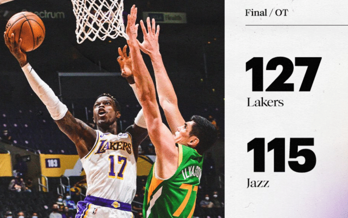 24直播网讯北京时间4月18日,湖人主场对阵爵士,戈贝尔、米切尔、费沃斯、康利均缺席,而詹姆斯和浓眉哥也继续养伤。双方都缺少主力,紫金军团最终通过加时以127比115获得胜利!