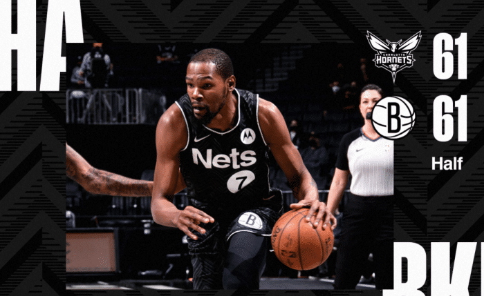 24直播网讯 北京时间4月17日,篮网主场迎战黄蜂,杜兰特复出,哈登继续因伤缺席。在上半场的较量中,黄蜂外线三分神准,尤其是布里奇斯,个人状态神勇,半场11中8高效砍下20分6板,得分直接创生涯半场新高!而被临时安排进入先发的新秀凯瑞也没有辜负主帅信任贡献13分,罗齐尔则是送出10分6助攻!凭借这3人的出色表现,黄蜂在上半场和篮网打成61平!