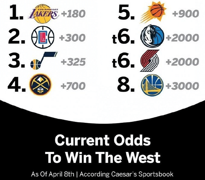 根据Kirk Goldsberry的数据显示,最有希望晋级到总决赛的西部球队是湖人,虽然现在的湖人仅仅位居西部第五,最近的战绩也相对一般,但湖人的整体实力、底蕴和人员配置还是很不错的。尤其是在不久之后詹姆斯和浓眉哥复出,他们和庄神德拉蒙德联手,再加上库兹马等人,还有总决赛经验、关键时刻有大心脏和一锤定音的球员,这样的湖人还是被不少人看好的。