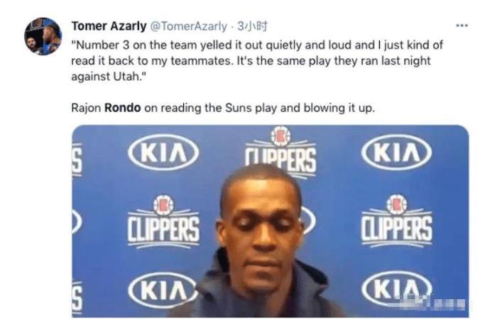 在防守中,隆多更是无解的存在,为啥呢?因为这哥们可以遇见未来。本场比赛,当保罗喊出太阳队的战术名称的时候,熟记各队战术的隆多很快明白了太阳队要打什么战术,隆多提醒了身边队友太阳队要进行的战术。快船提前的准备也让太阳队这一次进攻以失败告终。