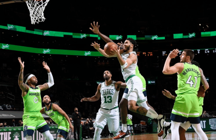 24直播网讯北京时间4月10日,NBA赛场险些爆出大冷门!凯尔特人在面对西部垫底森林狼的比赛中,在最后3分钟还领先11分的情况下,被对手最后时刻抹平分差追到124平拖入加时。好在加时赛凯尔特人塔图姆、布朗和沃克联袂发挥,最终145-136有惊无险地拿下胜利。塔图姆此役轰下53分10板,成为队史最年轻的50分先生。