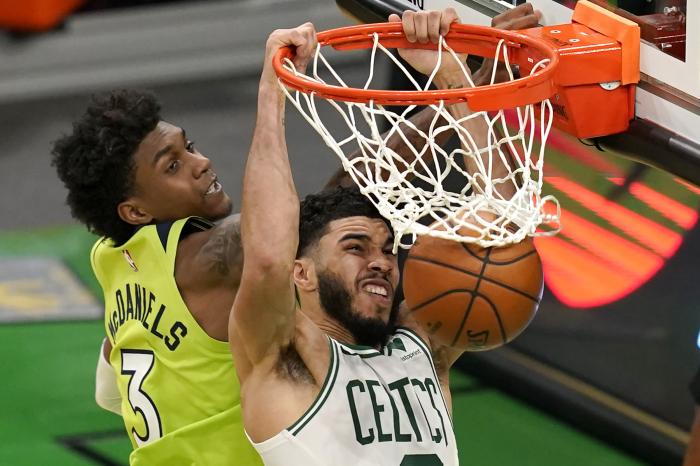 24直播网4月10日讯 NBA疯狂纪录日来了;凯尔特人加时145-136击败森林狼,塔图姆出战40分钟25投16中、三分10中6轰下53分10篮板4助攻,轰下生涯得分新高,23岁塔图姆狂砍53+10狂刷历史纪录;公牛球星拉文狂砍50+创纪录,鹈鹕球星锡安37+15也刷爆纪录。