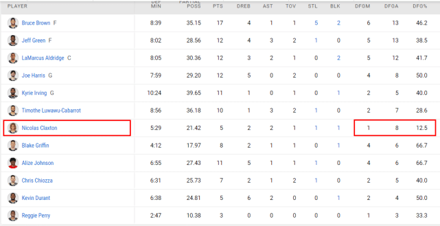 数据显示,克拉克斯顿在不在场,篮网的进攻效率都是119.1,换言之,他对篮网进攻的影响不大。但是防守端就是两码事了。克拉克斯顿在场的359分钟,篮网的防守效率是103.2,比防守最好的湖人(105.8)还厉害,克拉克斯顿不在场的2164分钟,篮网的防守效率是115.7,还不如森林狼(114.9)。